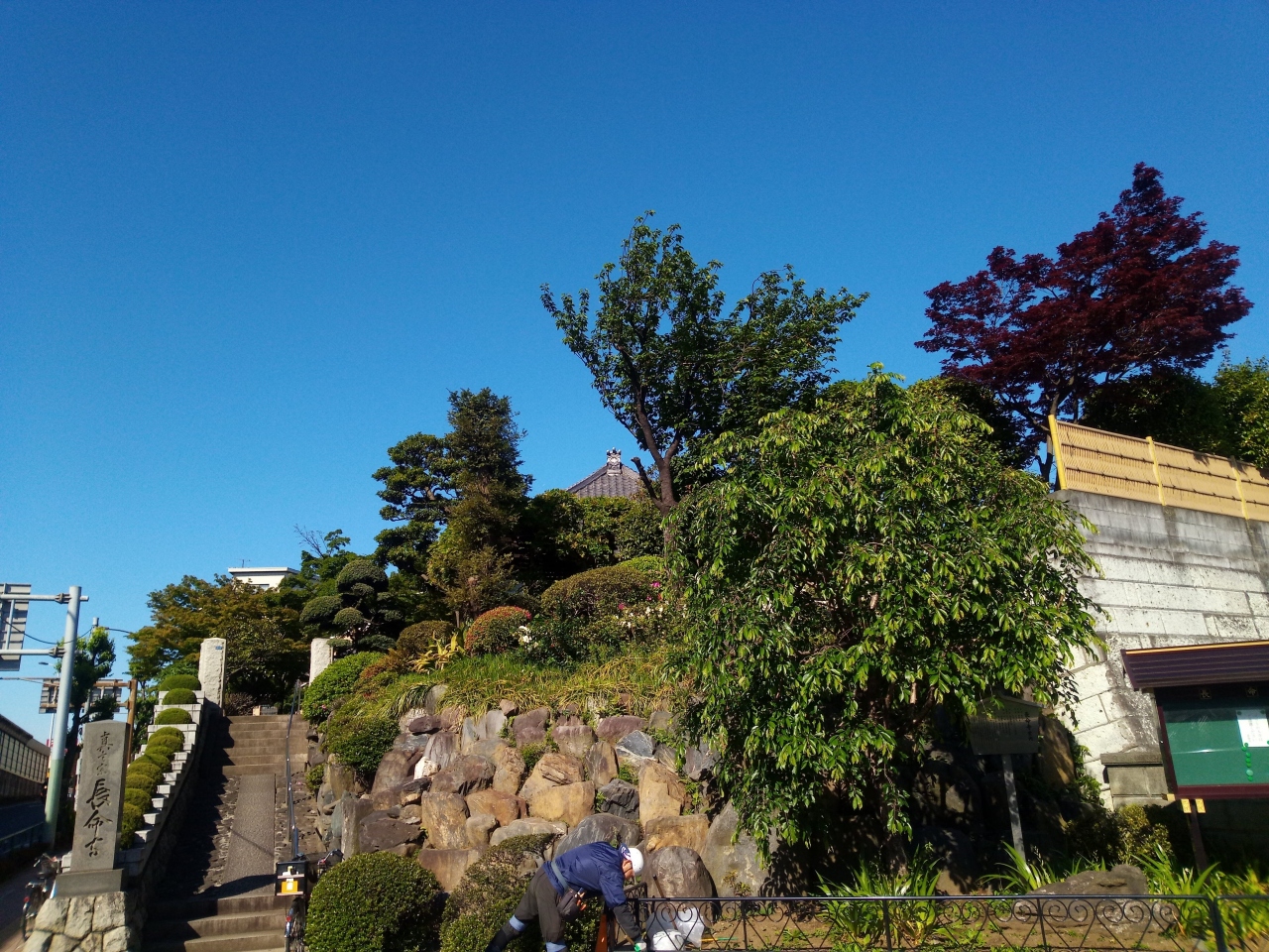 長命寺は、川越街道と環状七号線の角にあるお寺です。訪問時は、快晴で、添付写真のように、境内にある木々の緑と澄み渡る青空が、とてもきれいでした。建物自体は、ごく普通な寺という感じでしが、主要幹線道路沿いにあって、ビックリしました。