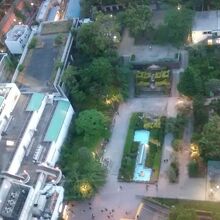 添付写真のように、文京シビックセンター展望ラウンジから西の真下を見た景色にあるのが、礫川公園です。後楽園駅に隣接していて、アクセスは抜群で、ヨーロッパ風庭園を思わせる景色が楽しめます。見逃せない観光アトラクションです。