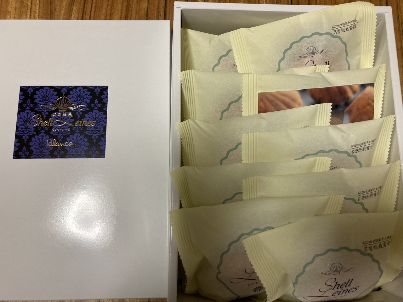 ミキモト真珠島で有名な鳥羽の銘菓、ブランカさんのシェルレーヌ。真珠パウダー入りのフィナンシェのような感じの焼き菓子であこや貝の形をしています。1個170円くらいしますが、とても美味しく、お土産などにもおすすめです。