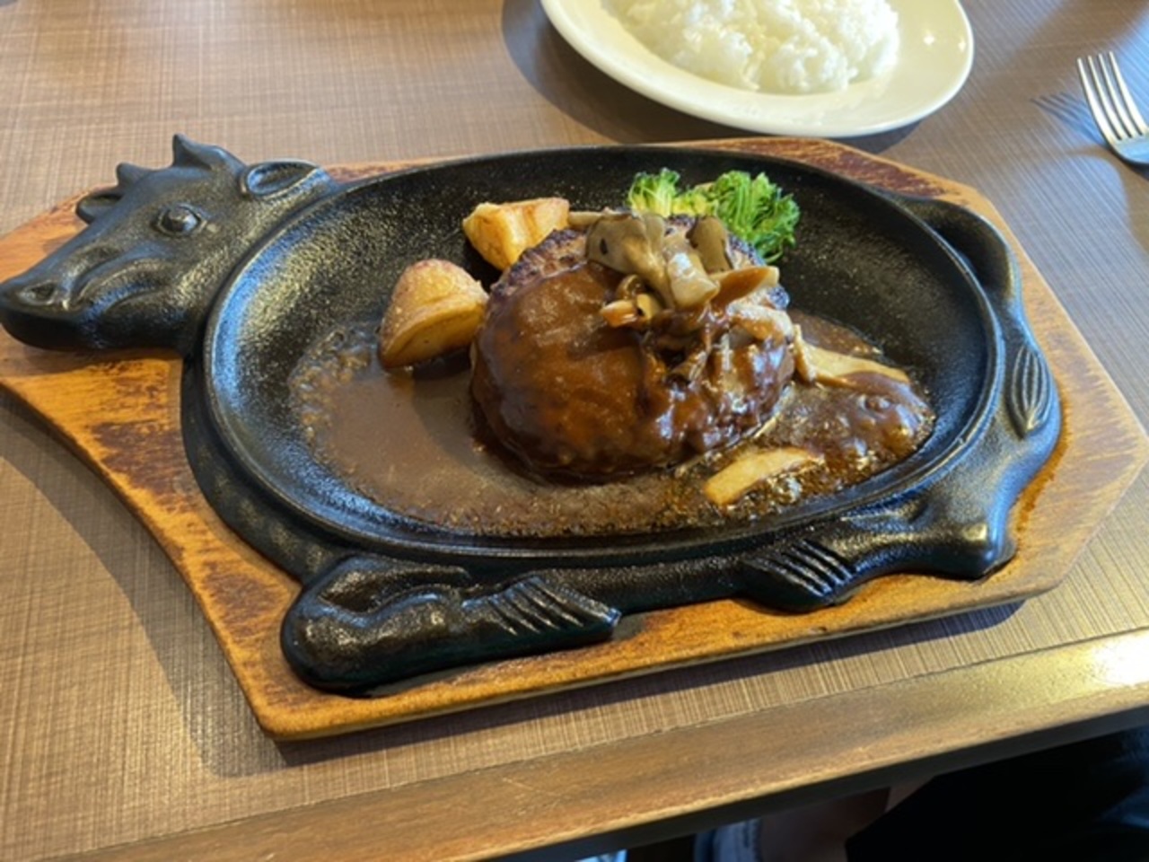食べたのはフォルクスハンバーグランチ1,243円!デミグラスソースのハンバーグです。