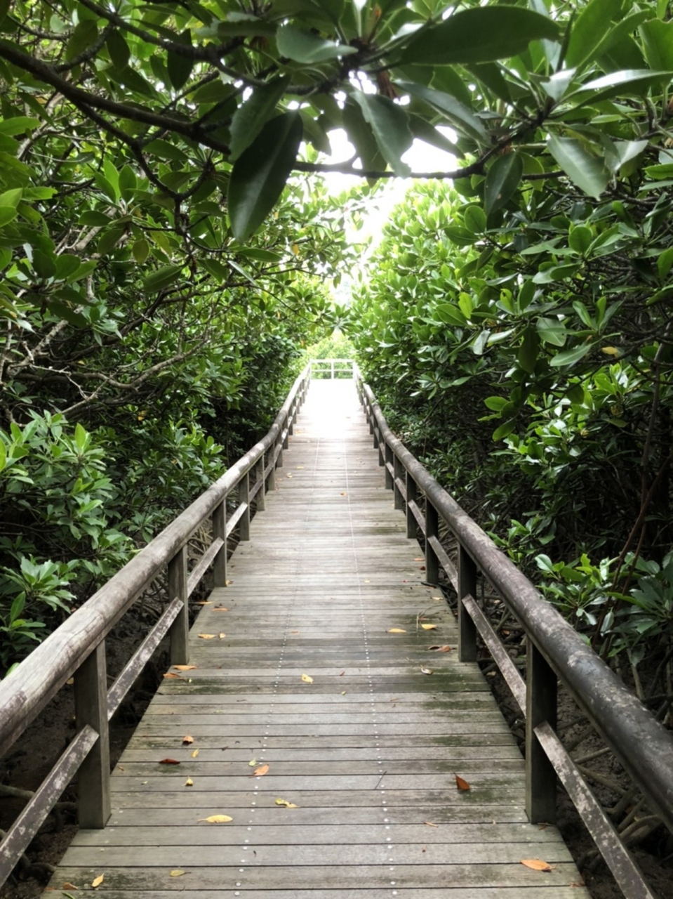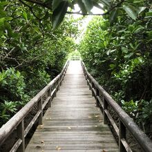 ヒルギ林に沿って、木のバリアフリーの道があり気楽に散策できます。