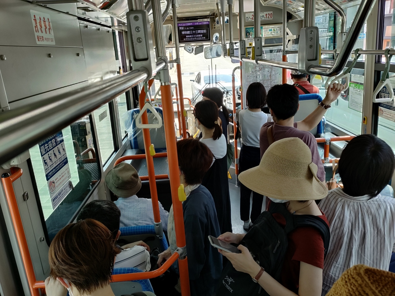 上記理由からガラガラでゆったり座れると思っていましたが、多くのバスが座れない混み方。観光客が大幅に減っているにもかかわらず立っている客が多く快適な移動が出来ません。