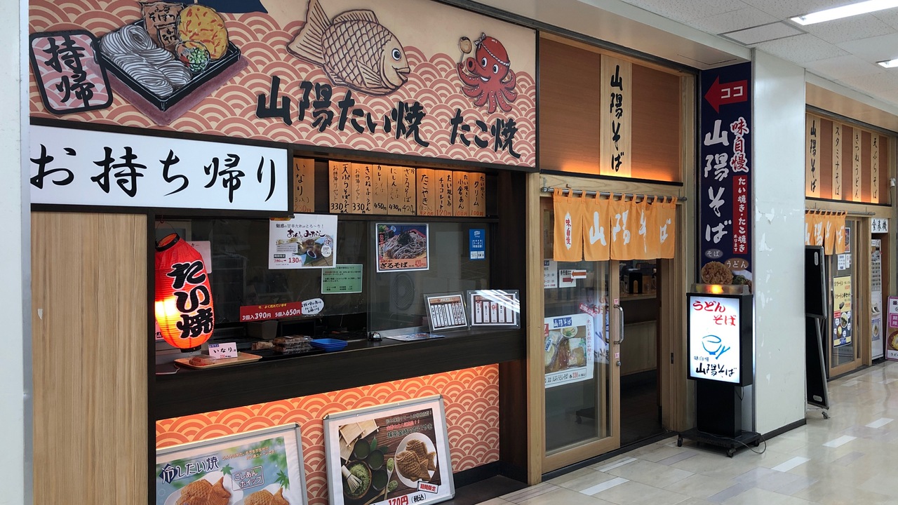 山陽そばは、山陽電鉄のいくつかの駅にある立ち食いそば屋です。垂水駅の山陽そば、改札を出た高架下にあります。かけうどん・そばが250円とお手頃価格です。たい焼き・たこ焼きなども売っているのが、立ち食いそば屋としては珍しいです。