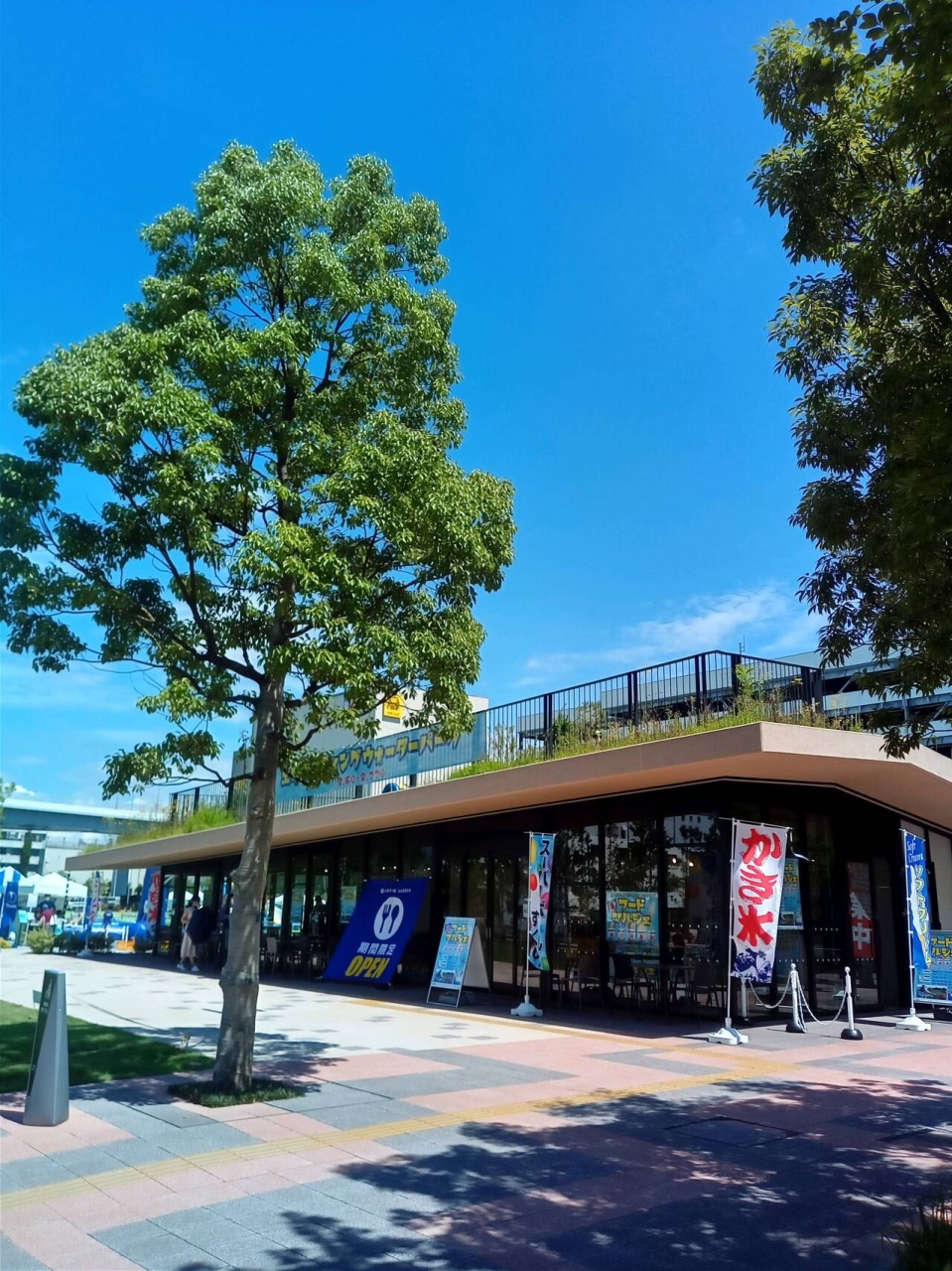 芝生広場にある建物もオープンしていて、かき氷などの販売もしていたり、キッチンカーも出店していて、お子さんと一緒に遊べるようになっていました。期間限定の開催のようです。