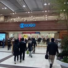 そごう横浜店は、横浜駅東口を出てちょっと歩くと着く駅直結型の大規模デパートで、みなとみらい方面散策前にちょっと店内をブラブラするのがいいです。添付写真のように、雨の日でも濡れずに駅から行けるのでとても便利です。