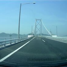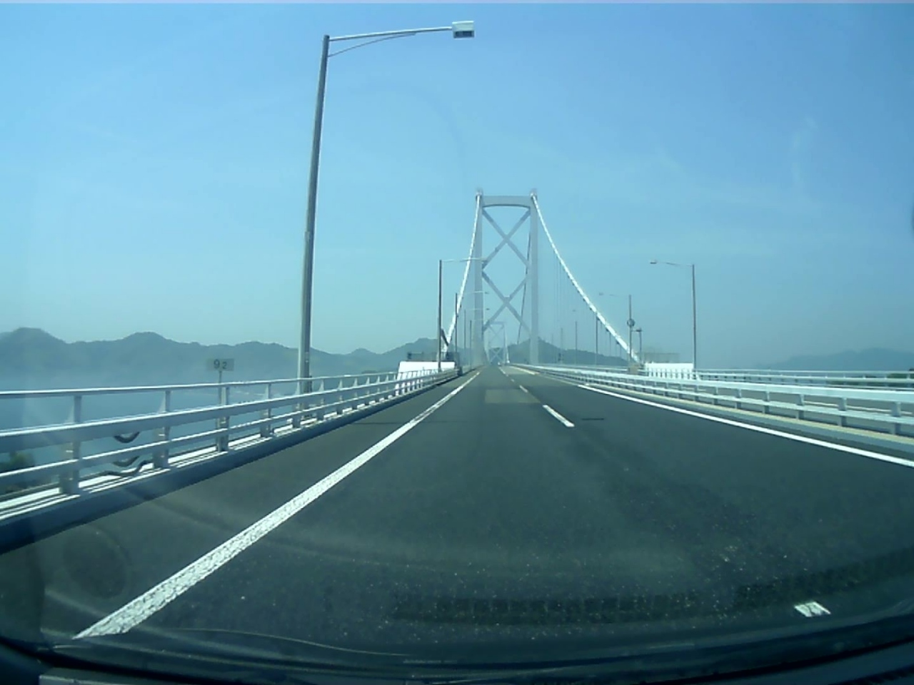 因島に向かうため、しまなみ海道から因島大橋を利用しました。因島大橋は向島と因島を結ぶ吊り橋で、2層構造になっています。上の層は自動車専用道になっていて、下の層は歩行者と自転車の専用道になっている吊り橋となっています。