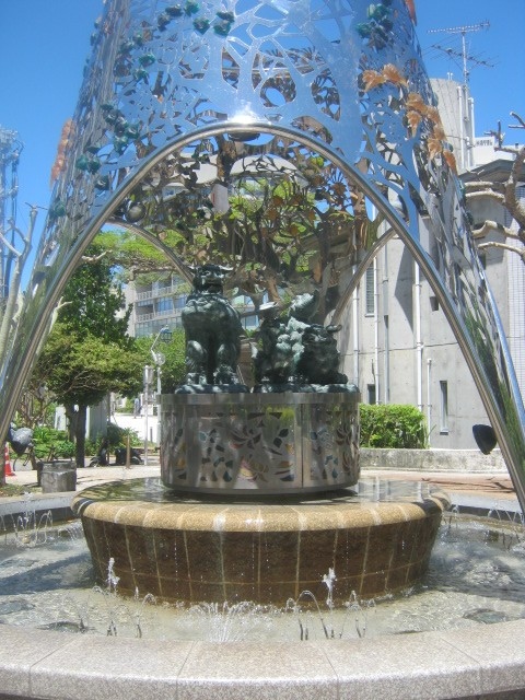 沖縄県庁のすぐ近くにある小さな公園で、今回は約6年ぶりの訪問となりましたが、ちゃんと中央のシーサーさんの回転部分が作動していて、こういう動くタイプのは得てしてしばらく見ないうちに作動していなくなっていたりすることも多いので、ちょっと安心しました。