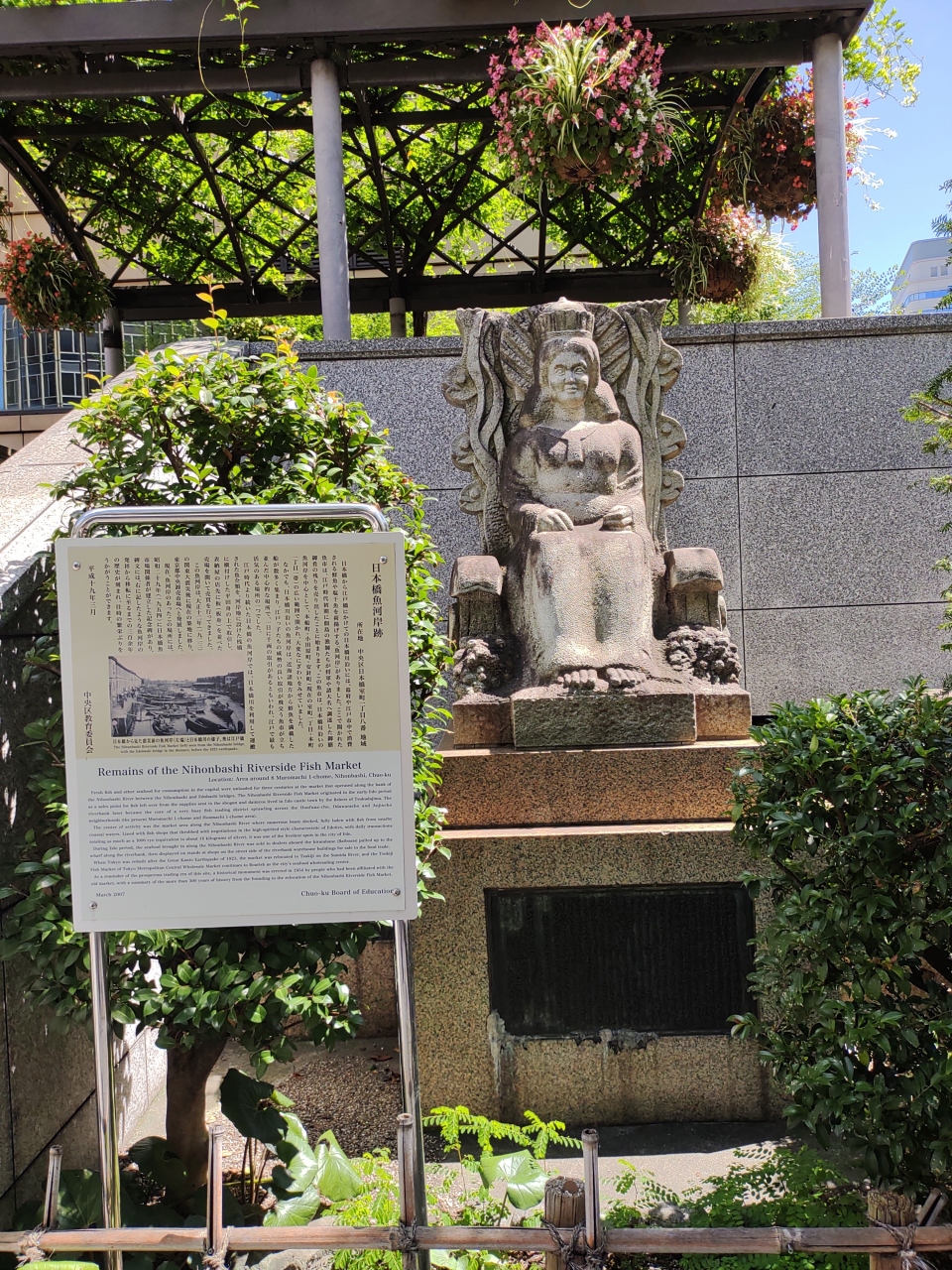 日本橋から江戸橋にかけての日本橋川沿いに、魚河岸があったそうで、その歴史等が書かれています。新鮮な魚が集まり、威勢のいいにぎやかな市が展開されていたようです。そこに銅像がどっしりと構えていて、印象的でした。
