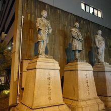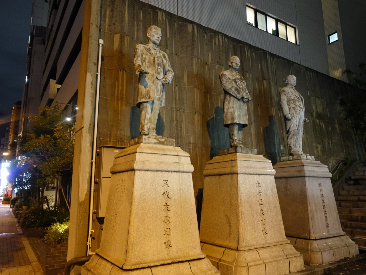 「大阪商工会議所」は松屋町筋沿いにあり、ビルの南側に「五代友厚」「土居通夫」「稲畑勝太郎」の3名の立像が並んでいます。五代友厚は、明治時代に功績をあげた実業家で、大阪証券取引所前にも見事な像がありますが、こちらは3名が並んでおり、甲乙つけがたい見ごたえある光景でした。