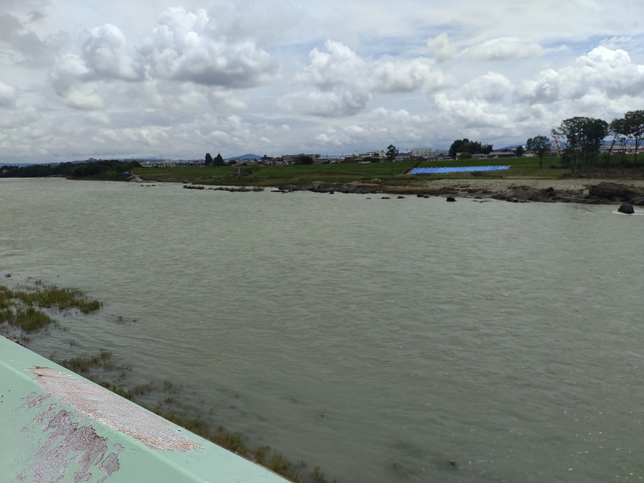 いろいろな場所から、合計6回くらい渡りました。川上の方は、流れも急で勢いよく流れていましたし、下流では川幅も広く、雄大に流れていました。川にかかる橋も大きかったです。揖斐川、長良川とともに、木曽三川の1つです。