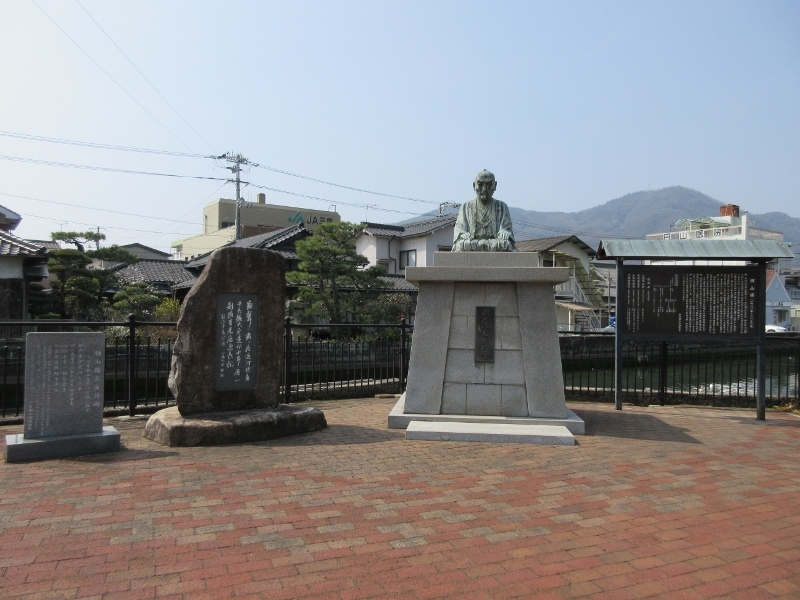 竹原の町並み保存地区へ向かう近くの川のそばに、この広場にありました。保存地区には頼山陽の父親の家が保存されていました。父親が出身なのに広場に名前を残せる人なのだと思いました。日本史で習ったことがあることを思い出しました。