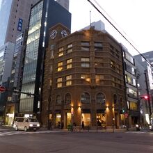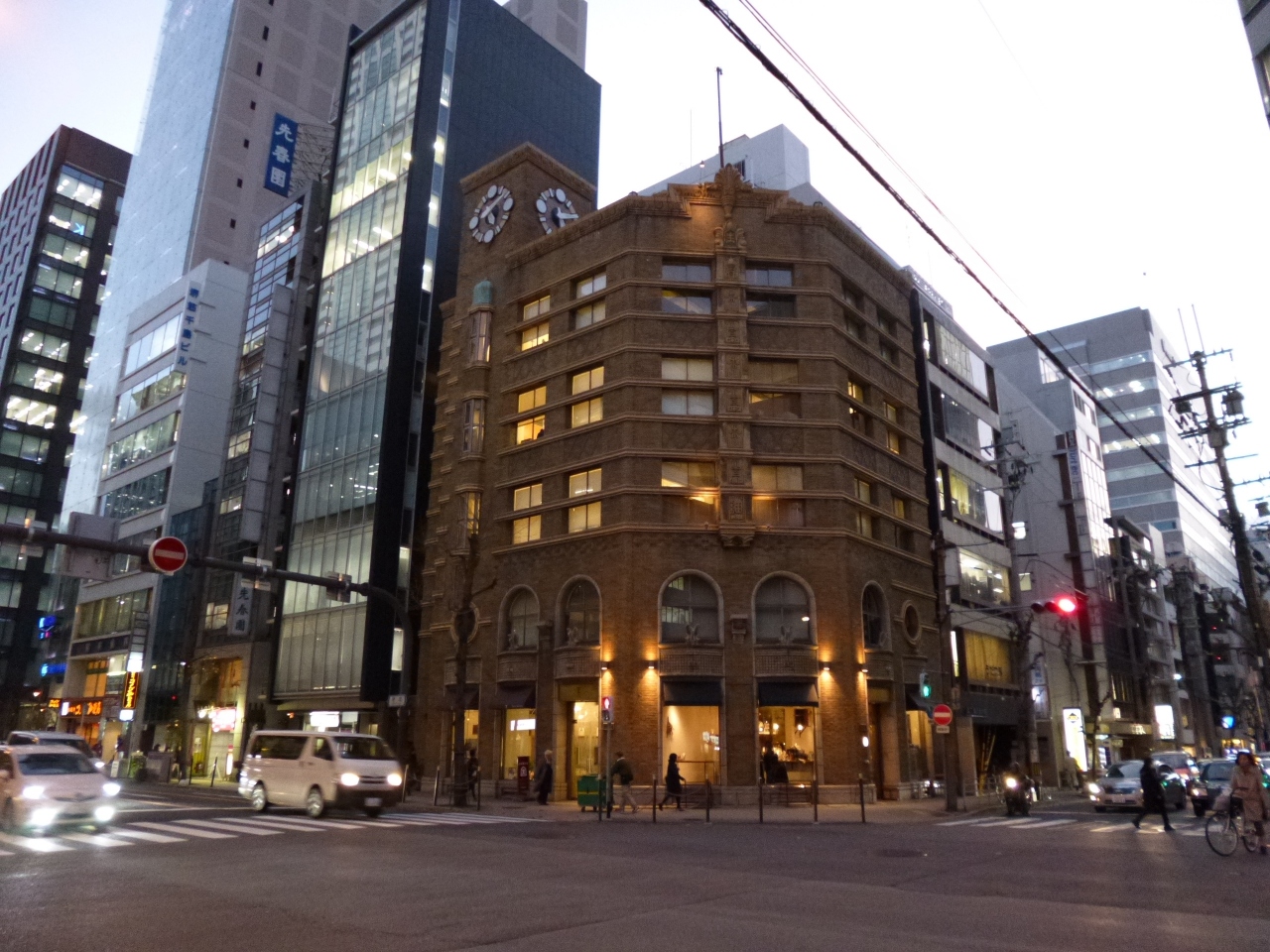 生駒ビルヂングは堺筋通り沿い、平野町1丁目交差点の南東側にあるビルで、昭和5年の竣工です。生駒時計店の本社ビルということで時計台を有しており、2階部分の美しいアーチを描いた窓なども印象的です。交差点という立地を生かした形状も興味深いと感じました。