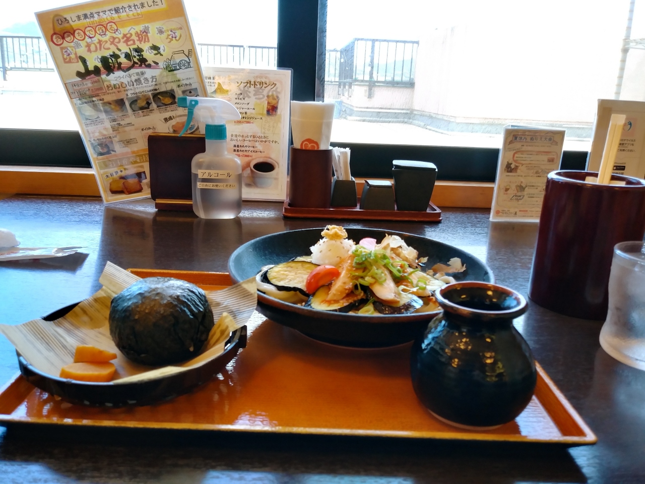 大野浦駅から車で5分ほどの場所にある温泉ホテルの中にあるレストラン。1Fは大浴場になっていて、温泉に入ったのちに海を見ながら食事が楽しめる。名物山賊焼きのほか、うどん・天ぷら等の和定食も充実。ソフトクリームなどデザートも美味。