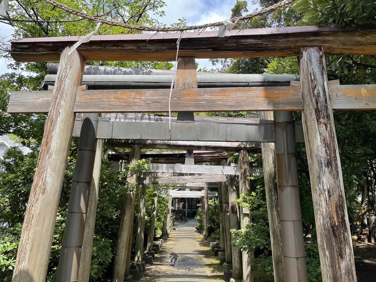 モノレール千葉公園駅の方から千葉公園に入る時すぐ隣にある神社です。赤い鳥居でなく、普通の木の鳥居や石の鳥居が何本も立ち並んでいます。雨上がりに訪ねたせいか境内に人気がなく静かというより、少し怖いような雰囲気でした。御神輿なども仕舞われていました。
