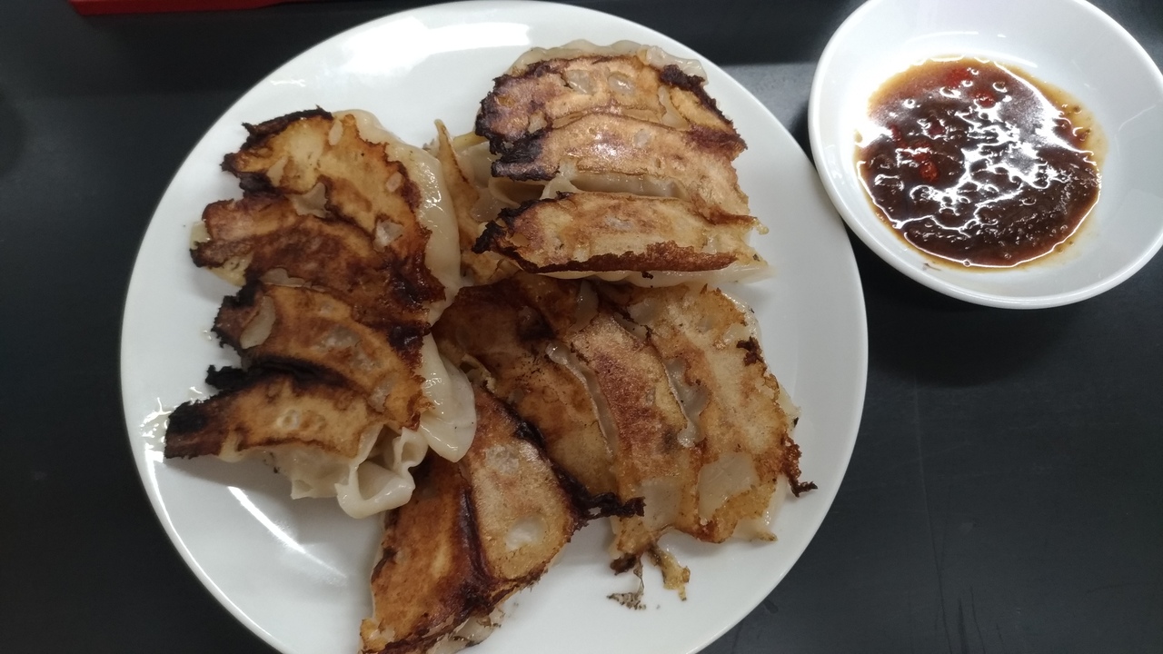 メニューは餃子のみ!白米もありませんという潔いお店が三宮には多い気がします。味噌だれでいただくのが三宮餃子ということで、こちらのお店も卓上には味噌だれがセットされています。1人前7個で390円とリーズナブルな価格も良かったです。