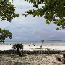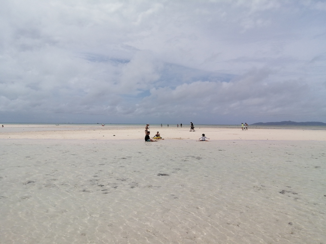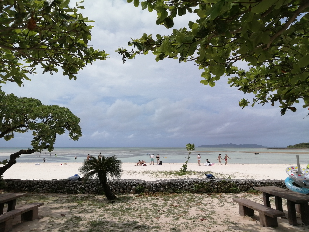 言わずと知れた竹富島のマストビーチです。美しいビーチだと思いますが、天気と潮の状態によると思います。この時は薄曇りの干潮時。かなりの遠浅でどこまで行っても膝上の深さにはならず…。浅ければ海の青さも映えませんし。しかし、人の少なさに救われました。ベストコンディションでも人が多ければ興ざめしてしまいますから…。ビーチの西側なら木がせり出しているので多少日陰があります。