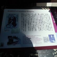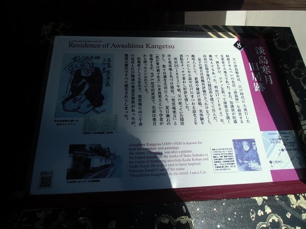 説明板によると、父の淡島椿岳は、江戸時代に大流行した軽焼きせんべいの名店「淡島屋」を経営する実業家で大地主でした。