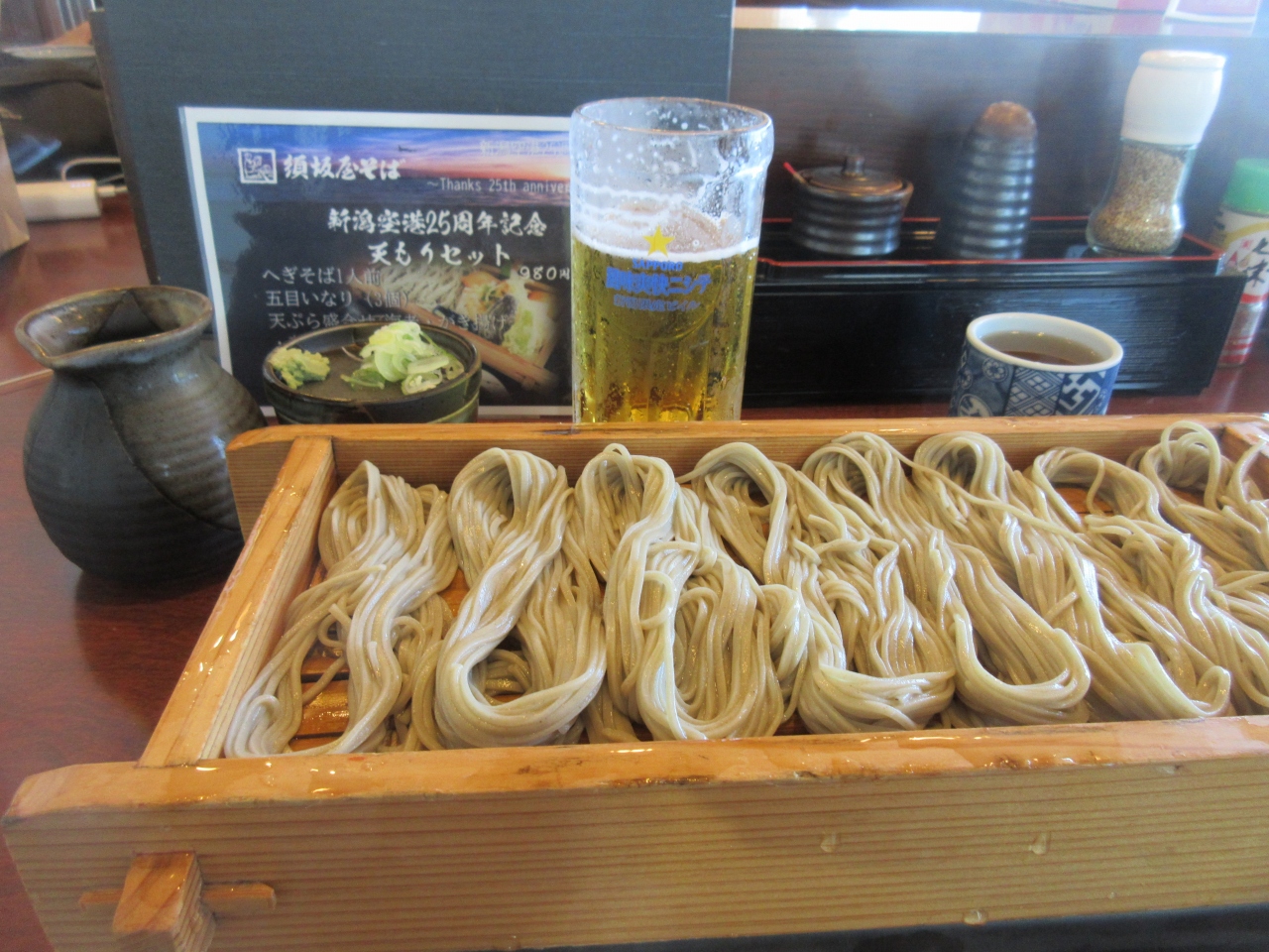 新潟空港内の店舗で搭乗前の昼食として利用しましたが、そばなので提供されるまで時間もかからず、生ビールと一緒においしくいただきました。