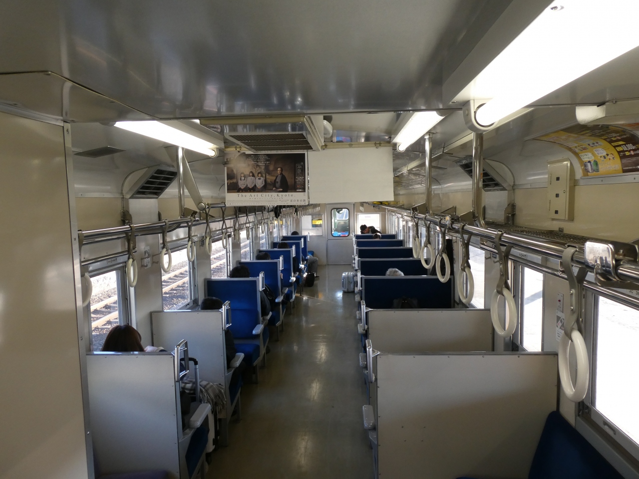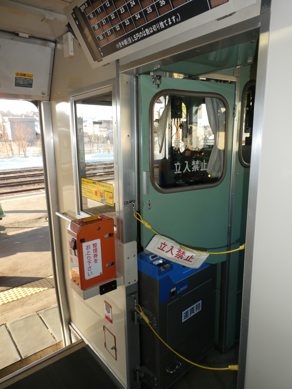 乗車したのは平日で長万部(16:15発)⇒森(17:28着)の1両ワンマン運転の普通列車です。