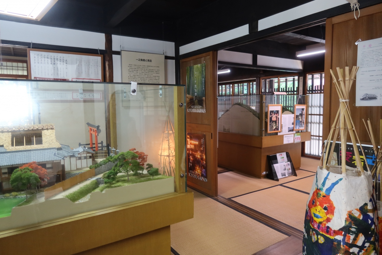 伝統的な民家が立ち並ぶ伝統的建造物群保存地区の高尾パークウェイの高架下近くに嵯峨鳥居本町並み保存館があります。明治期に建てられた二階建ての住居を改装した保存館では街並み保存のパネル、精緻な模型が展示されており、無料で見学できます。建物自体も竈のあるおくどさんなどが見学できるのも見物です。