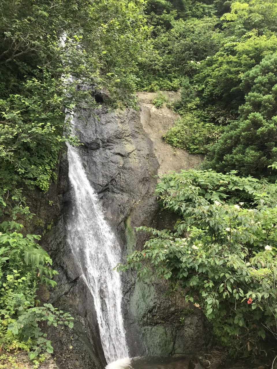 案内板によると、岩を流れる清流が三味線の音に聞こえたことからこの名前が付いたそうです。実際のところは、三味線の音には聞こえず、特別な感じは無かったです。海沿いにあるため、滝の音よりも波の音の方がよく聞こえました。
