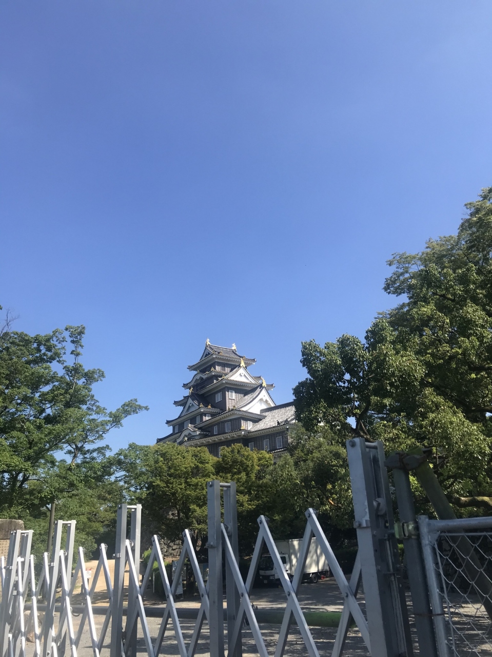 岡山駅から徒歩で20分くらい歩くとある、水面のそばにそびえ立つ岡山城があります。今から400年以上前に、当時の大名により、7年もの歳月をかけて築城された、漆黒のお城になります。壁が漆黒ですので、外観が渋いです。