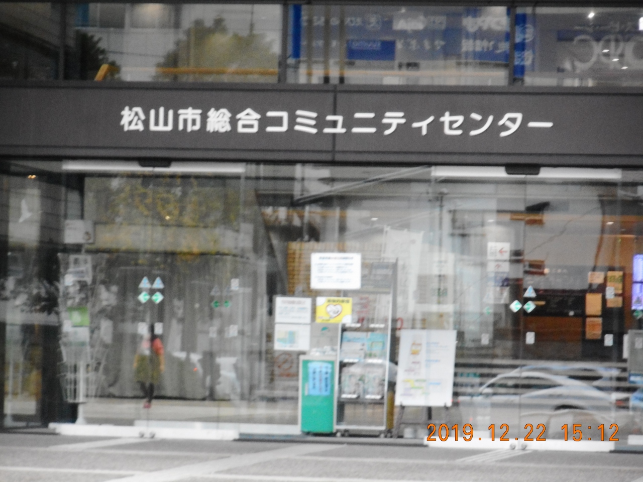 四国松山観光で立ち寄りました。北寄りに松山市総合コミュニティセンター温水プール、中央に広い体育館のある松山市総合コミュニティセンター、南寄りに松山市立中央図書館の順で並んでいました。図書館尾西側には松山市総合コミュニティセンターこども館・コスモシアター、更に西側には松山市総合コミュニティセンター企画展示ホールがあり、一大公共施設エリアでした。広場には素焼きの「坊っちゃんとマドンナ」像があったのですが、残念ながら何か違和感を感じる像でした。