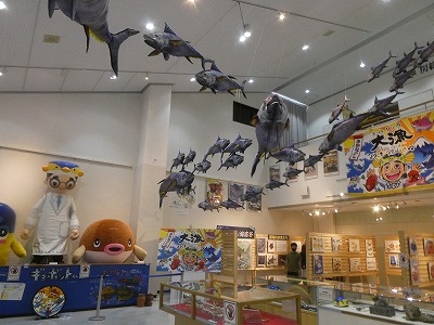 千葉県館山市の渚の駅たてやま、一番の売りは渚の博物館内1階にあるさかなクンギャラリーでしょう。館山市周辺の海域に生息するさまざまな魚類が展示され、さかなクンの大きな人形もありました。館山市とさかなクンの関係はよく分かりませんが、よく場所を提供したものです。2階は国指定文化財を含め地元の漁具などを展示した民俗スペースになってました。
