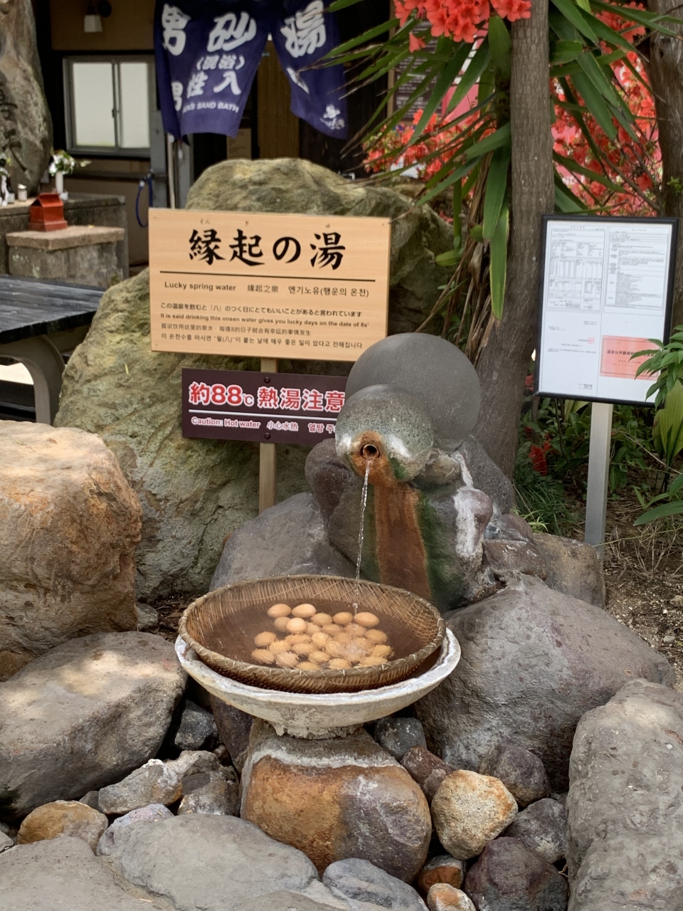 中庭には温泉卵が置いてあったり、飲む温泉、地獄蒸しもあるし温泉のテーマパーク、と言った感じです