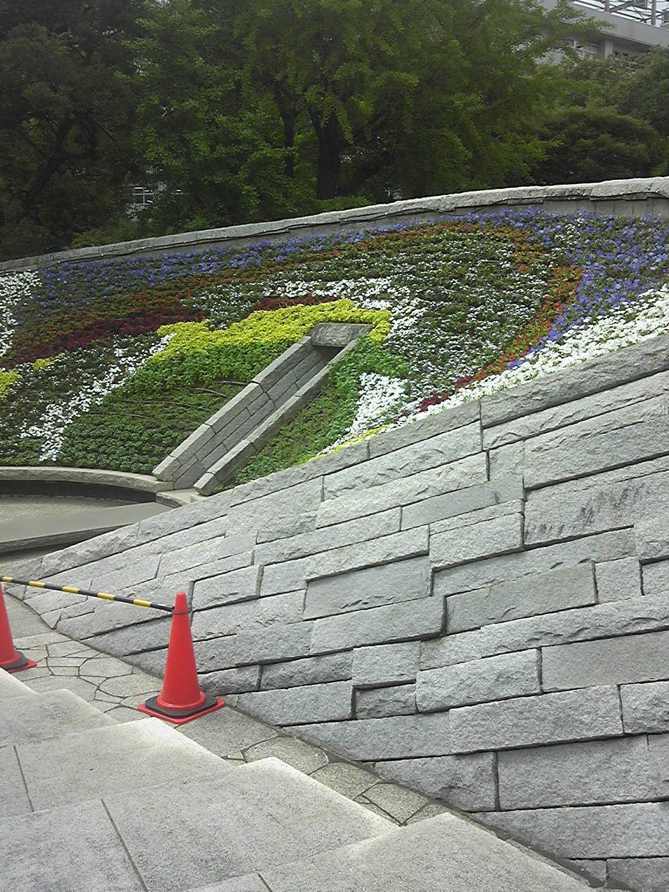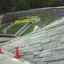 半円形の大きな碑の中は花壇のようになっていて、空襲で亡くなった方々を慰霊しています。