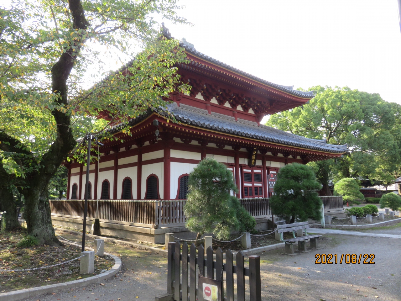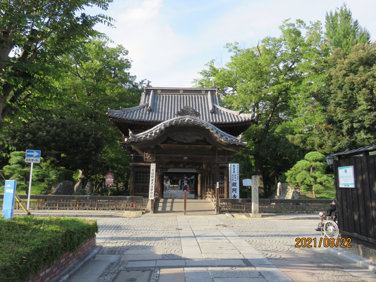 足利氏の広大な邸内に建てられた大日如来様を祀った氏寺です。四方をお濠と土嚢に囲まれて武家屋敷跡の雰囲気が漂っていました。 お濠を渡る太鼓橋とその先の山門の重厚な雰囲気も歴史が感じられました。 門をくぐって参道の先に建つ本堂は8年前に国宝に指定され、この場所全体も国の史跡であり日本名城100選の一つとなっています。