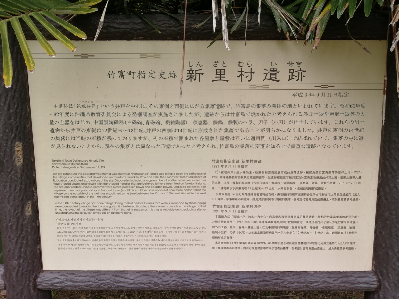竹富島の集落の発祥地とされる新里村の遺跡。時代は12~14世紀。花城井戸を中心に広がっています。