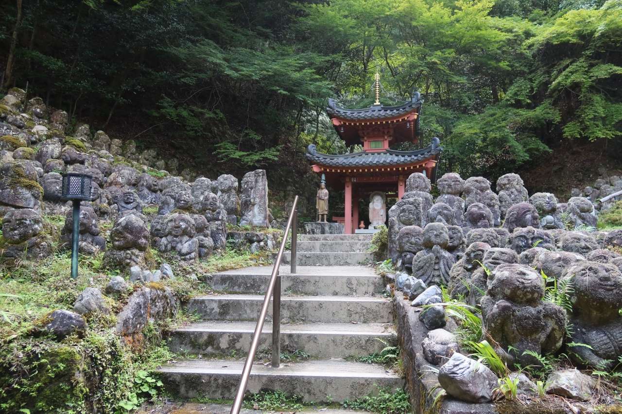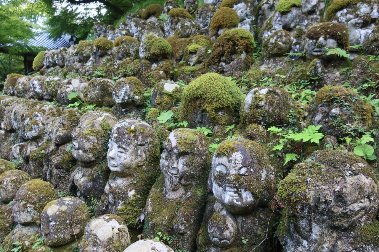 嵯峨鳥居本の最奥、清滝トンネルの手前にある天台宗のお寺です。山沿いに建てられた寺院には1200体にも及ぶ石造りの羅漢が圧巻です。一体一体羅漢の顔が異なり、面白い顔をして羅漢もあり見ていると楽しいです。あだし野念仏寺の石塔も圧巻ですが、一足伸ばしてこちらも参拝すると良いです。