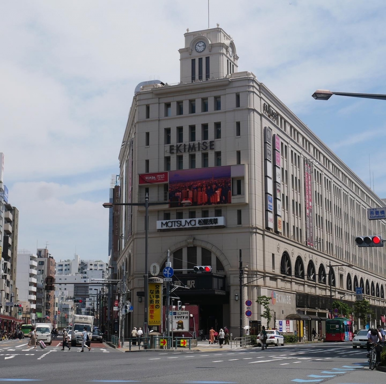 松屋浅草と一緒になっており、レトロな外観が魅力の駅舎です。