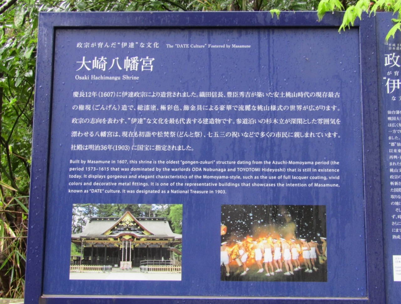 仙台中心部から北西にあり、1607年に伊達政宗公が創建した神社です。