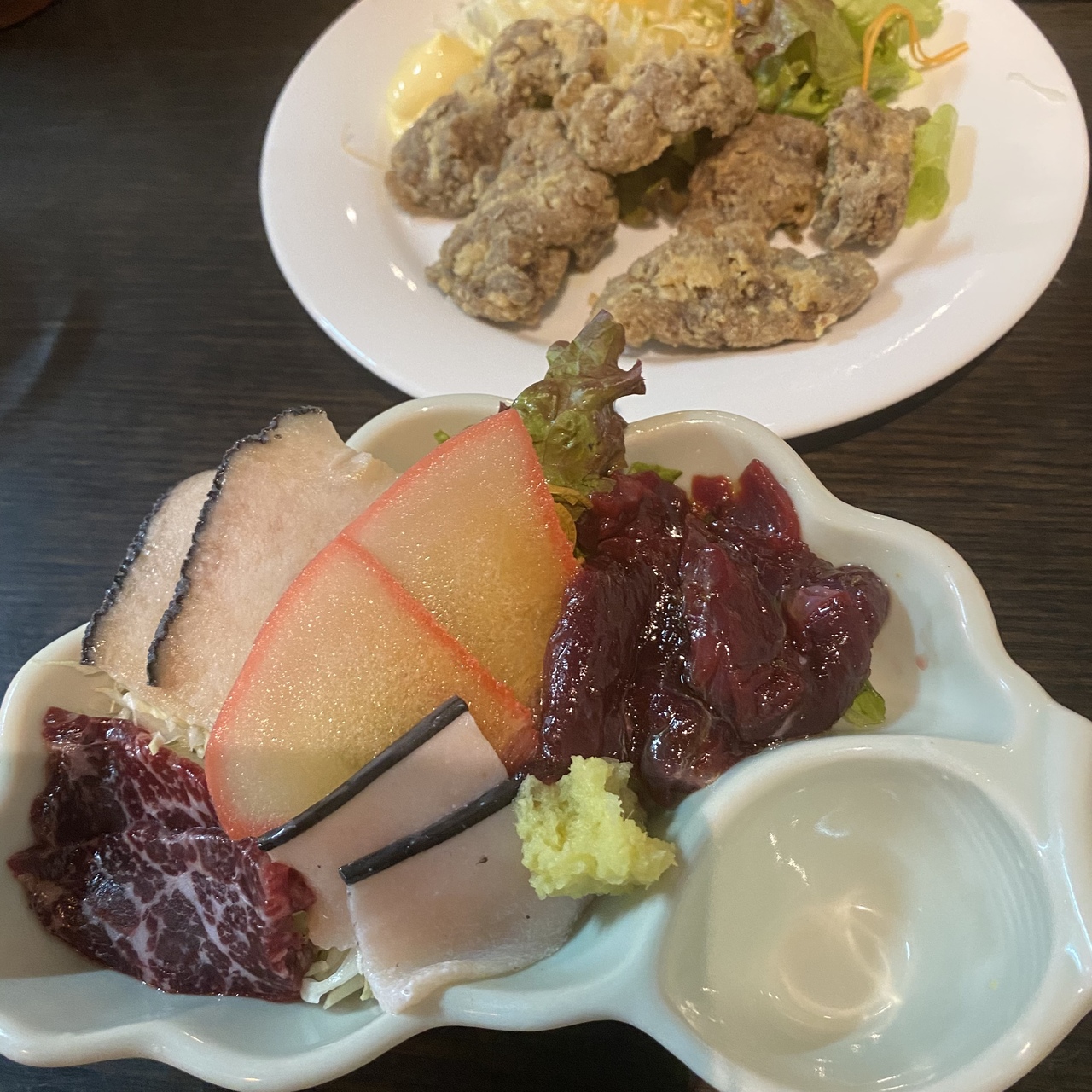 ランチにて利用しました。くじらの刺身盛りはいろいろな部位を楽しみたかったので5種盛りにしました。食感も味もそれぞれ異なり、クジラを堪能できました。唐揚げを追加にてシェアしましたが、クジラをおいしくいただけました。