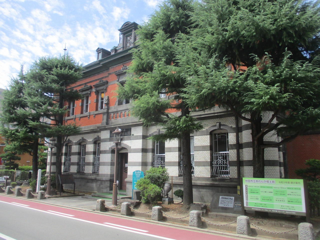 秋田市の中心部に位置する重厚な造りの赤れんが郷土館です。旧秋田銀行本店だけあってカウンターやロビーなどがそのまま残され、往時の銀行業務を偲ぶことができます。館内には郷土の芸術家の記念室が併設されていて、秋田で花開いた芸術を垣間見ることができました。