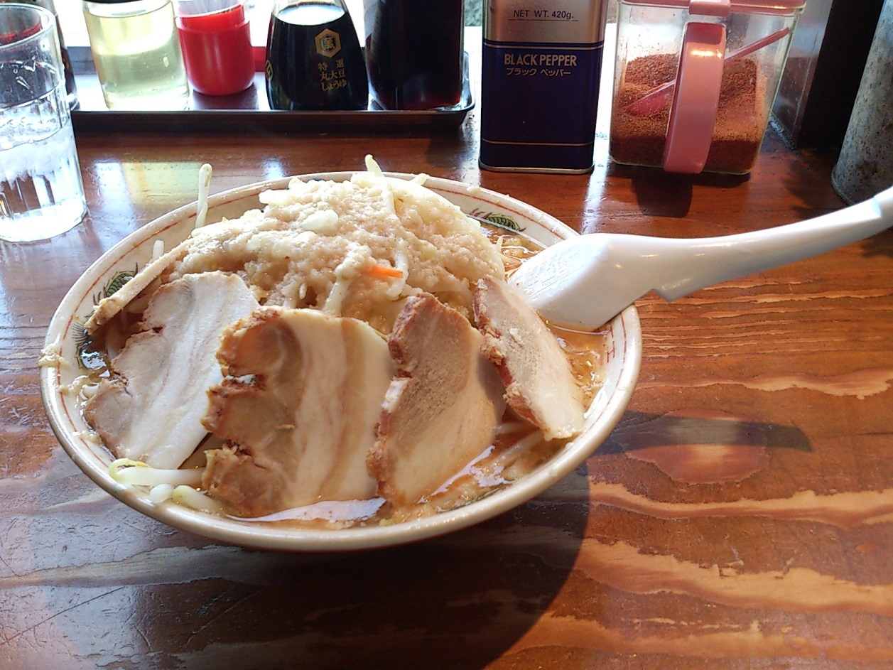 中央区晴海1丁目の商業施設・晴海トリトンスクエアの3階レストラン街にあるガッツリ系のラーメン屋さんです。ランチで立ち寄り味噌ラーメンをいただきました。モヤシが山盛りで、チャーシューが6枚。背脂たっぷり辛めの味噌スープと極太麺の一品です。スープには豚骨特有のコクがあり、なかなかの美味。麺の量が多く、満腹しましたが、スープが私好みの味で満足しました。