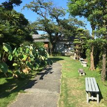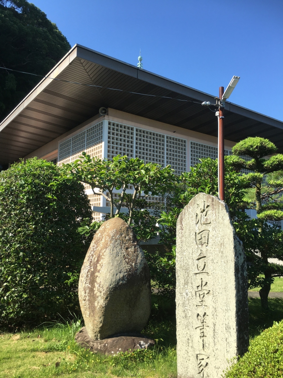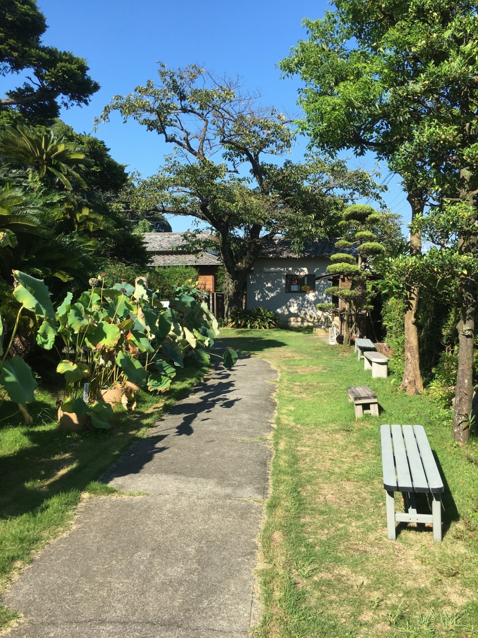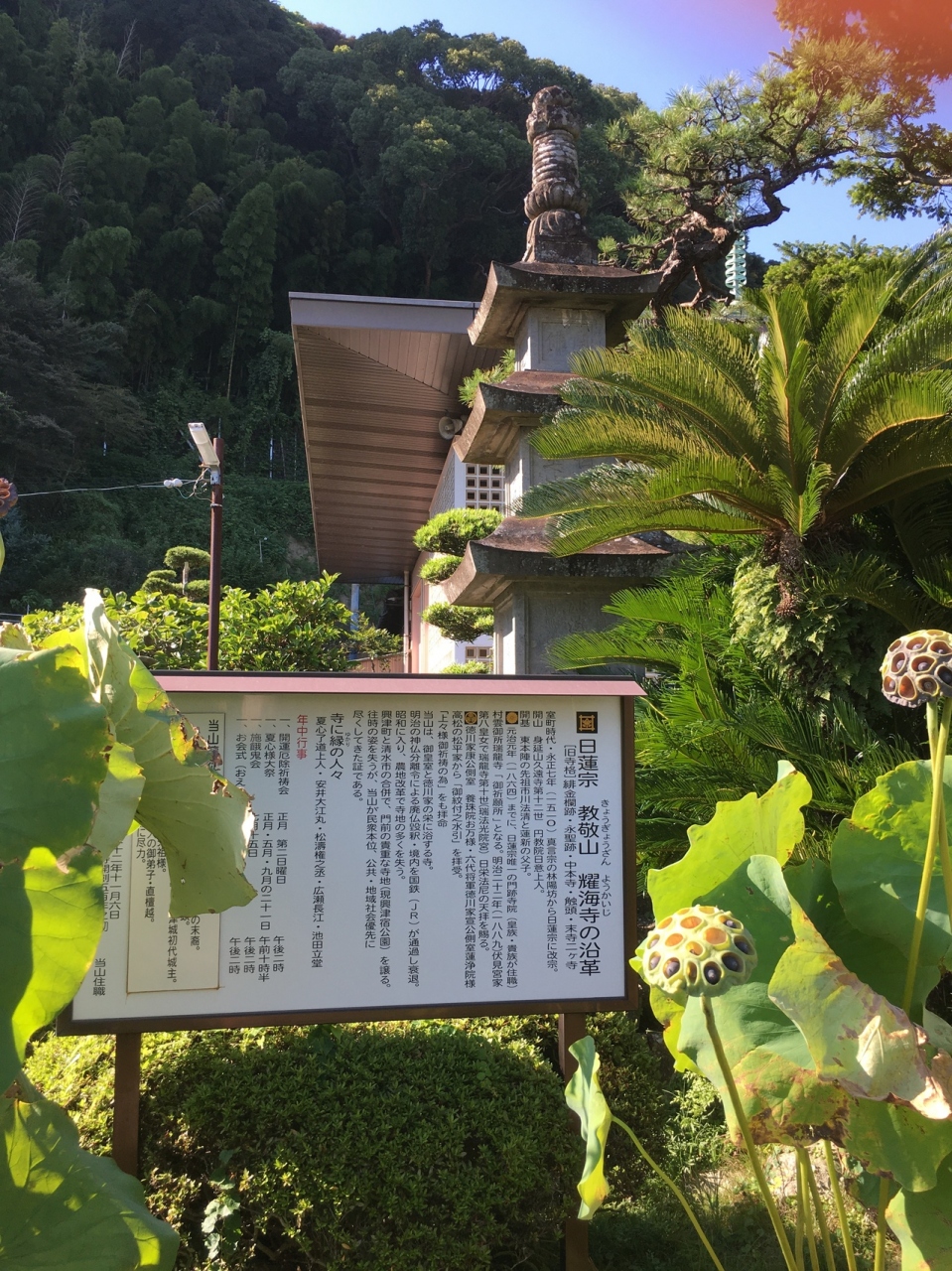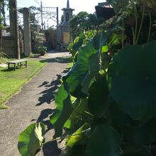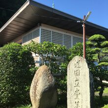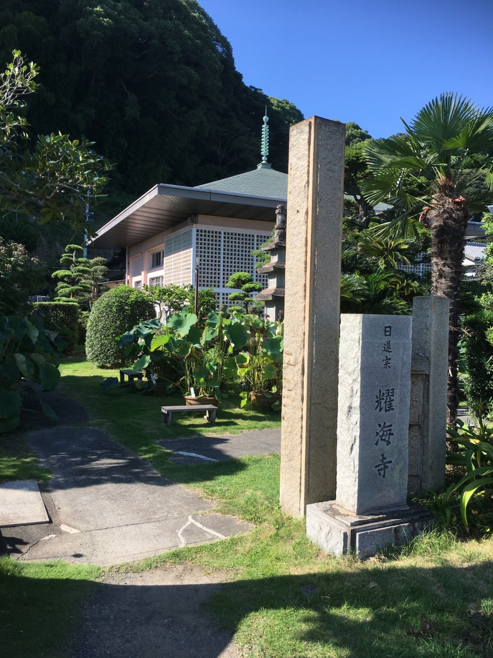 踏切渡り直ぐにお寺がありました。境内の芝生の緑色が鮮やかで本殿は東南アジア風の建物でした。草木が整備されて生えてあり、夏心堂と言う建物が風情が入りました。本堂の奥がお墓で、電車の音が時たま聞こえる寺でした。