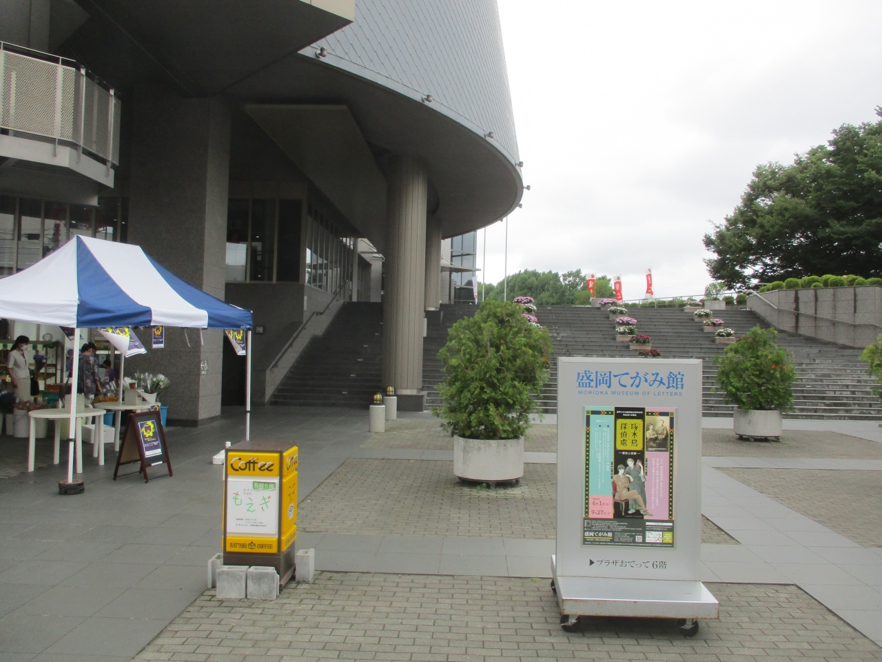 盛岡てがみ館はプラザおでっての6階にあります。ビルに案内がなく分かりづらいのか、建物の前に小さい看板による案内がありました。金田一京助の手紙や若山牧水の啄木の臨終を知らせる手紙などが常設展示されています。企画展では、盛岡の建物をモチーフにした絵葉書が展示されていました。