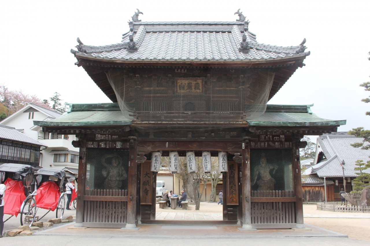 宮島にある真言宗の寺院です。、厳島神社の見学ルートの出口からすぐで、まず山門が目に入ってきます。本堂には神仏分離で厳島神社からうつされた八臂弁才天像などがあり、厳島神社と関係が深かったことがうかがえます。