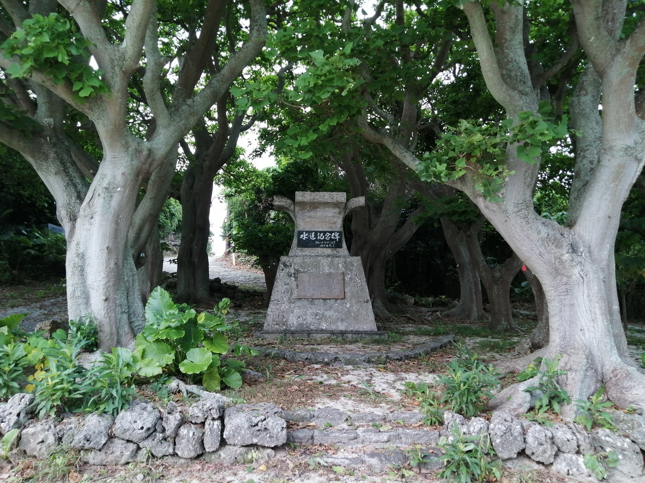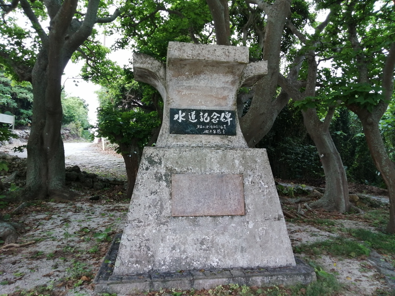 1976年(昭和51年)に開始された石垣島からの海底送水を記念して建てられたのがこの記念碑です。なぜこの場所に…おそらく、それまで飲料水や生活用水に利用されていた「仲筋井戸」の脇に設置したということだと思います。井戸水を頼りに生活しなければないらい大変さは想像するに難しくはありません。島民の方々の生活が楽になり、どんなに喜んだことでしょう。