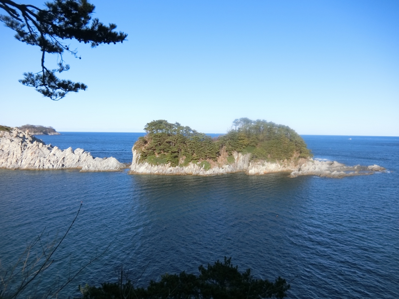 ビジターセンターから浄土ヶ浜に向かって歩いていると標識があります。階段を少し登っていくと展望台がありました。展望台から見る風景は素晴らしいです。高台から見ると、浄土ヶ浜の全体が見え、海から突き出たでこぼこ岩と青い海と空と絶景でした。