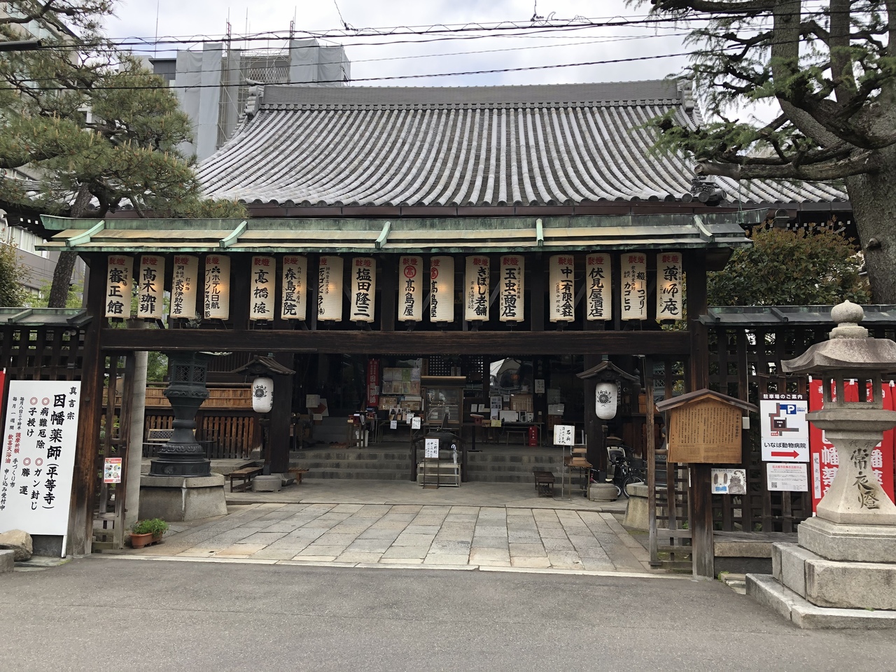 烏丸通り、四条通りと五条通りの間ぐらいを東に入ったところにあります。観光地というよりも地元の方に信仰されているお寺といった感じです。ご本尊が薬師如来であり癌封じのご利益があるとされています。インコや文鳥のお守りがとても可愛くて印象に残っています。