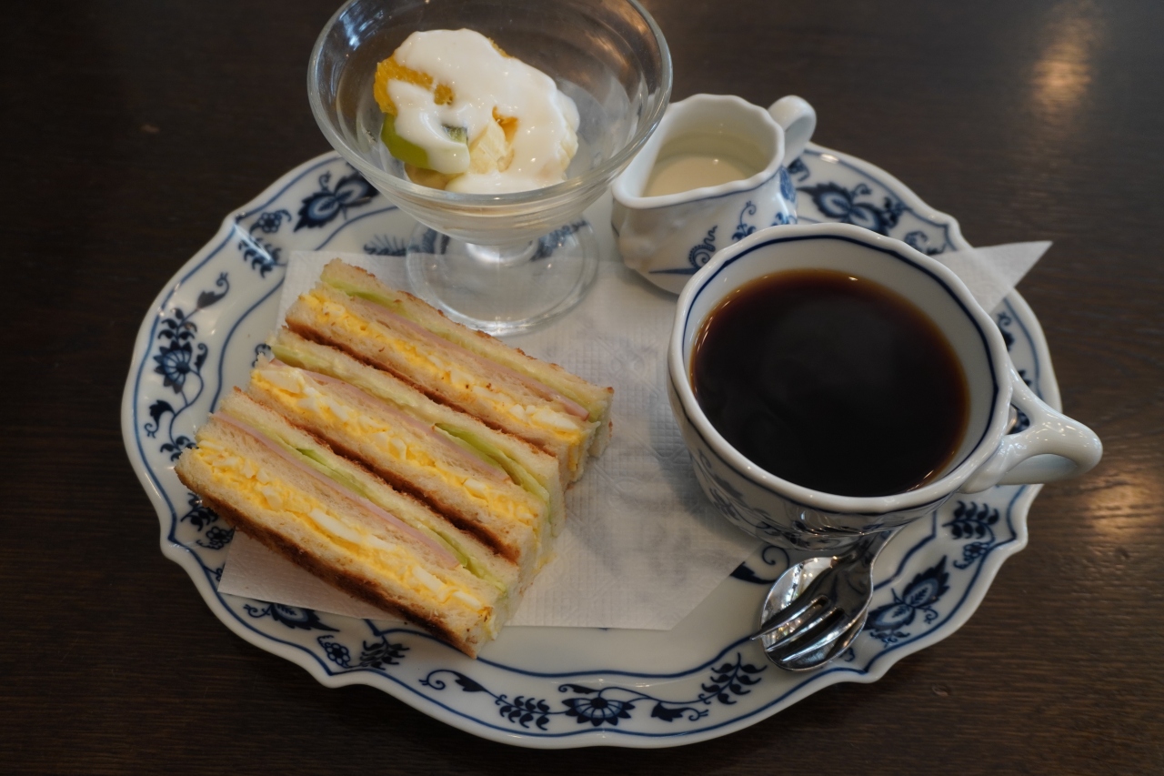 フルフルは、広島市内中心部の人気の喫茶店。常連さんもそこそこいて、落ち着いた雰囲気です。外観から想像するよりもゆったり。レトロというか、少しメルヘンチックな内装も悪くないですね。いただいたのは、一番人気という焼きサンドイッチのモーニング。ちょっとフルーツも付いたりしていて、それも何気に豊かな気持ちになれるように思います。