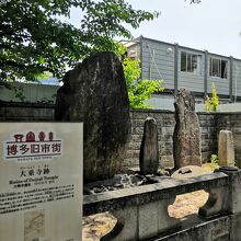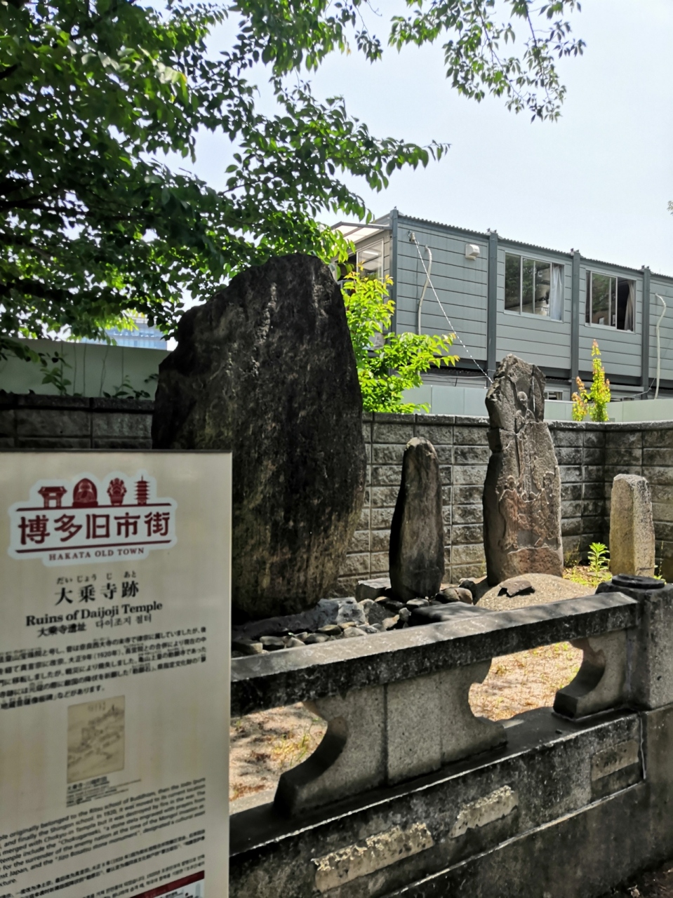 冷泉公園というオフィス街の公園の道路を挟んで南側にあります。806年に空海によって開基された大乗寺があったそうですが、現在では他の展示物と並んで石碑が建っているのみの場所です。説明文があるので理解はしやすかったです。