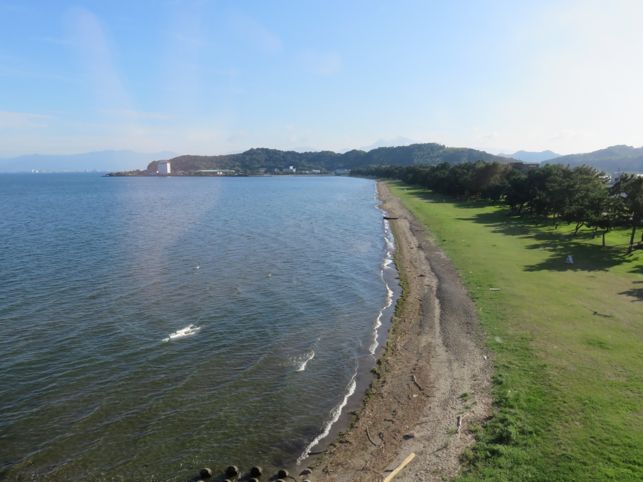 夏の終わりに彦根の琵琶湖畔に宿泊しました。隣が松原水泳場でした。海は盆過ぎればクラゲが出ますが、湖水なのでこの時期でもクラゲは大丈夫そうです。眺めていただけですが、毎朝カラスのえさ場となり、続いてイヌの散歩と水遊び。ビニールごみも多く、あまり清潔な感じはしませんでした。