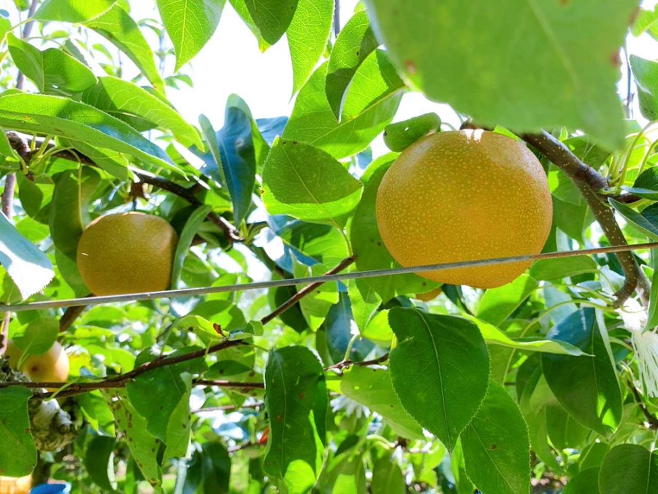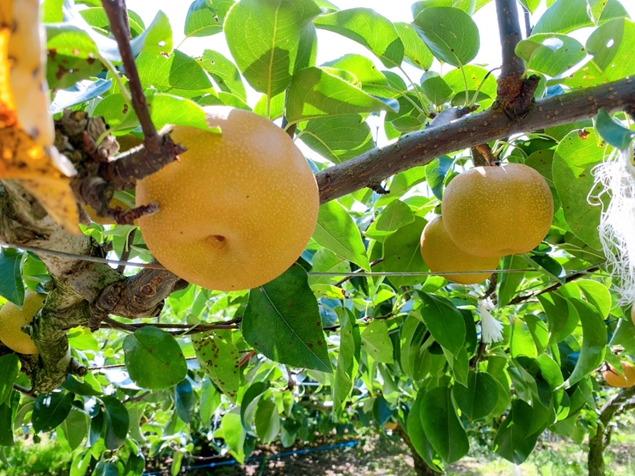 5年前に、桃狩りをしたくて行ったのですが、受付開始後20分後に到着したのに既に受付人数終了で苦い思い出があるので、この日狙っていた梨狩りは頑張って早起きして行きましたが、人数的には余裕でした。 ブドウ狩りやブルーベリー狩りもまだまだ人数はいけそうな感じでした。 季節的には、さつまいも掘りもやってて、家族連れにはそれが1番人気高そうに見えました。