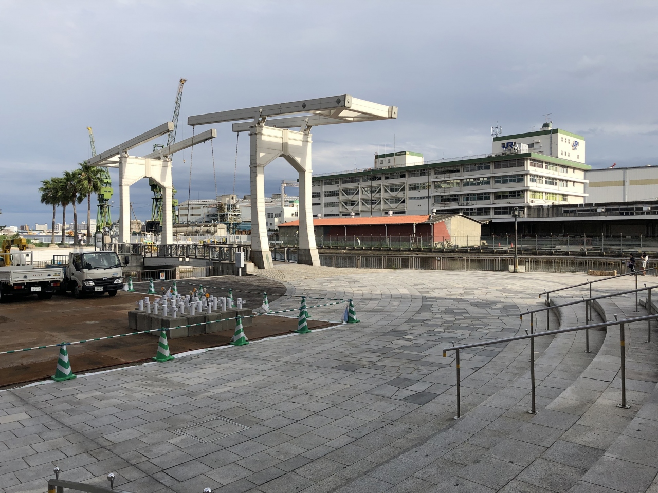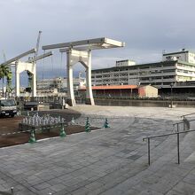 ハーバーランドの跳ね橋「はねっこ」のすぐ脇にあるスポットです。訪問時は何かの工事のための資材置き場、トラックの駐車場になっていましたが・・。けれど、周辺には跳ね橋や煉瓦造りの倉庫を利用したショップや飲食店などがあって、すてきな空間になっています。