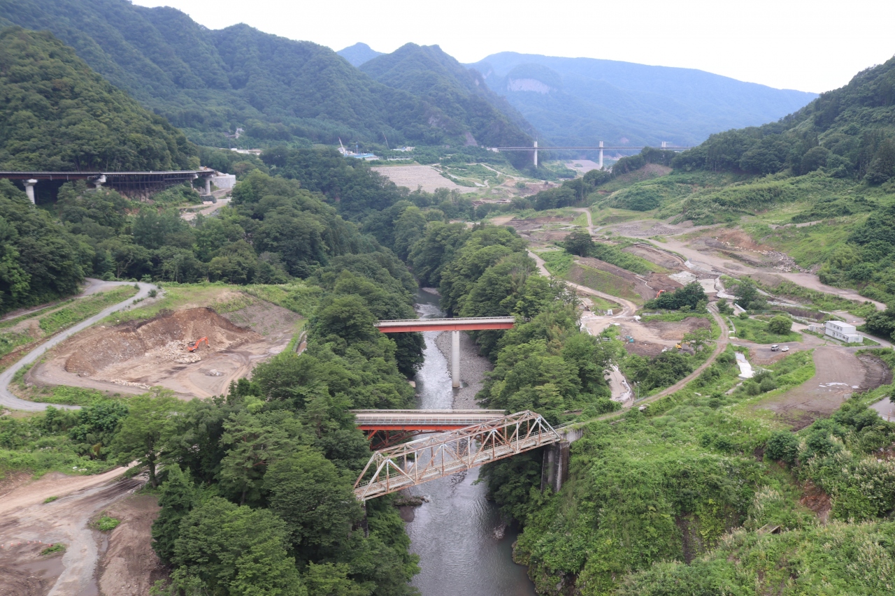 一時は工事中止にもなり話題となったダムです。2020年4月に運用開始となりましたが、訪れたのはその前に19年の夏、すでにダム施設はほぼ完成し、水を貯める前でした。展望台からはダム湖の湖底となる鉄道駅跡や道路がみえ、悲しくなりました。
